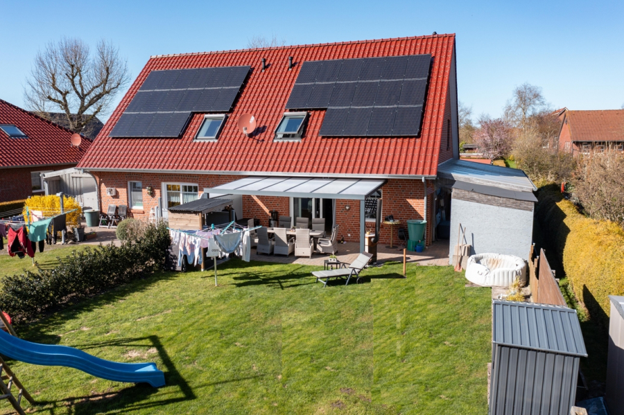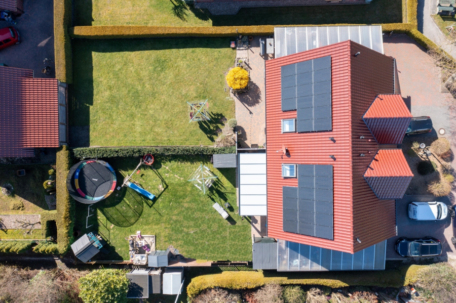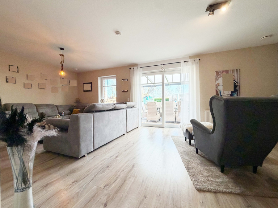 Das Haus überzeugt unter anderem durch eine solide Bauweise, eine gut durchdachte Raumaufteilung, eine Südterrasse mit Blick in den Garten sowie eine moderne Ausstattung. Es verfügt über 3fach-verglaste Fenster und eine zentrale Be- und Entlüftungsanlage, die für ein angenehmes Wohnklima sorgt. Der Glasfaseranschluss befindet sich in Vorbereitung, sodass auch zukünftige Anforderungen an schnelles Internet erfüllt werden.