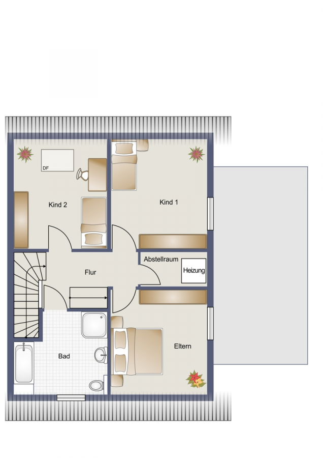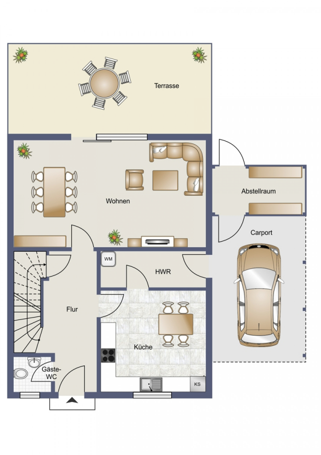 Zusätzlichen Komfort bieten ein großzügiger Carport sowie ein praktischer Abstellraum. Der gedämmte und ausgebaute Dachboden schafft weiteren nutzbaren Raum – ideal als Hobby-, Arbeits- oder Stauraum.