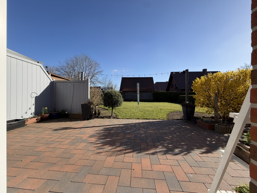 Auf ca. 450 m² großem Grundstück genießen Sie optimale Sonnenverhältnisse bis in die Abendstunden – perfekt für entspannte Stunden auf der Terrasse oder im pflegeleicht angelegten Garten.
