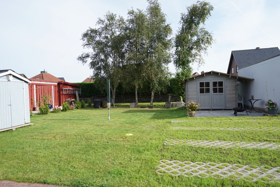 Ein separater Schuppen gehört zur Wohnung und bietet zusätzlichen Stauraum, beispielsweise für Fahrräder oder Gartengeräte. Darüber hinaus steht ein Teil des hinteren Gartens zur Mitnutzung zur Verfügung, inklusive einer kleinen Blockhütte.